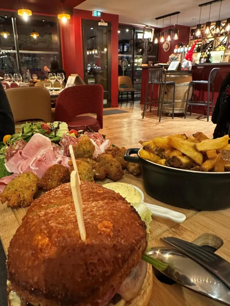 Ici, on oublie les repas traditionnels où chacun garde jalousement son assiette. Aux Copains d’Accords, on met tout au milieu, on goûte à tout et on peut même se resservir certains plats parce que la curiosité et la générosité font partie de l’expérience. Chaque recette est faite maison, pensée pour se régaler ensemble. Malakoff doré qui croustille, fondues moitié-moitié qui rassemblent, burger malak’ qui surprend…
