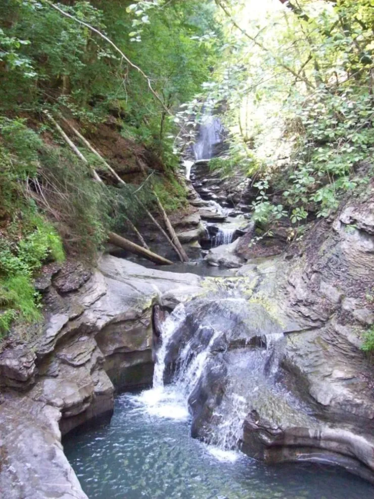 A pretty little mountain stream, with a natural basin, which descends as a waterfall to the Pont de la Flée, where it joins the Torrent des Fours to form the Gorges de Lévaud and ends up in the Sallanche.